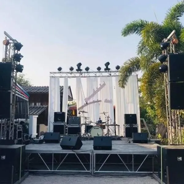 A powerful outdoor sound setup engineered for events, ensuring high-clarity audio projection and balanced sound even in open environments.